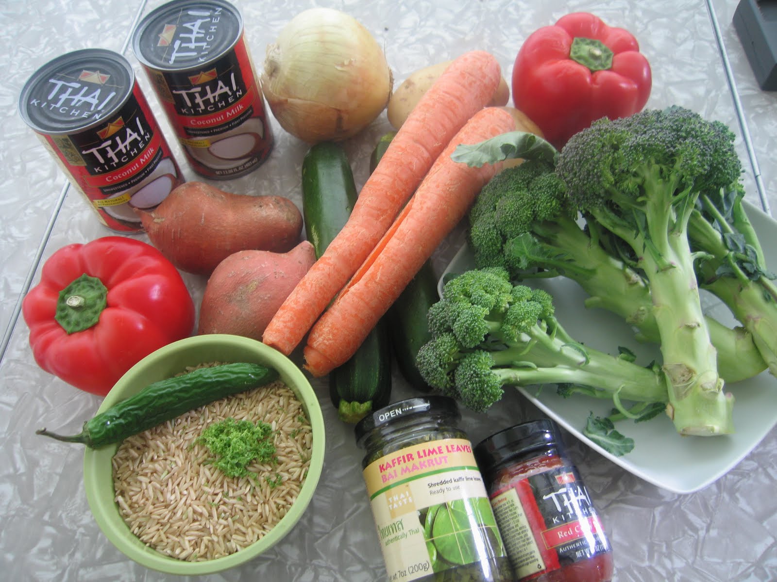 I love curry, love. My husband…not so much (talking about the curry). So sometimes I’ll treat myself to lunch and have curry by myself. Recently I was watching Giada DeLaurentiis on the Food Network and she was making Thai food for her husband and Vegetable Curry was on the menu. I thought awesome, if Giada whom is a Italian girl/chef can make curry for her husband maybe this Italian cosmo hippie chef (me) may have found a curry recipe to make for my husband. So it goes that a couple days ahead of time I’m prepping Billy that I want him to have a open mind, all the other things that I have made him that he thought he wouldn’t like he ended up liking, go figure. So it was the opening day for Farmer’s Market. It was cold and rainy and perfect for something warm like curry. I made the curry and was so excited, and guess what? Billy liked the it, but for me not so much. What happened you ask? I’m not really sure, but if you’ve had curry you know a good curry. This was a great easy recipe and it got my husband to have an open mind to curry. When ever I made something awesome my husband will say “babe this is so good, what did you put in this?” and my reply is always “I put my finger in it!”, so maybe I forgot to stick my finger in it. Next time.