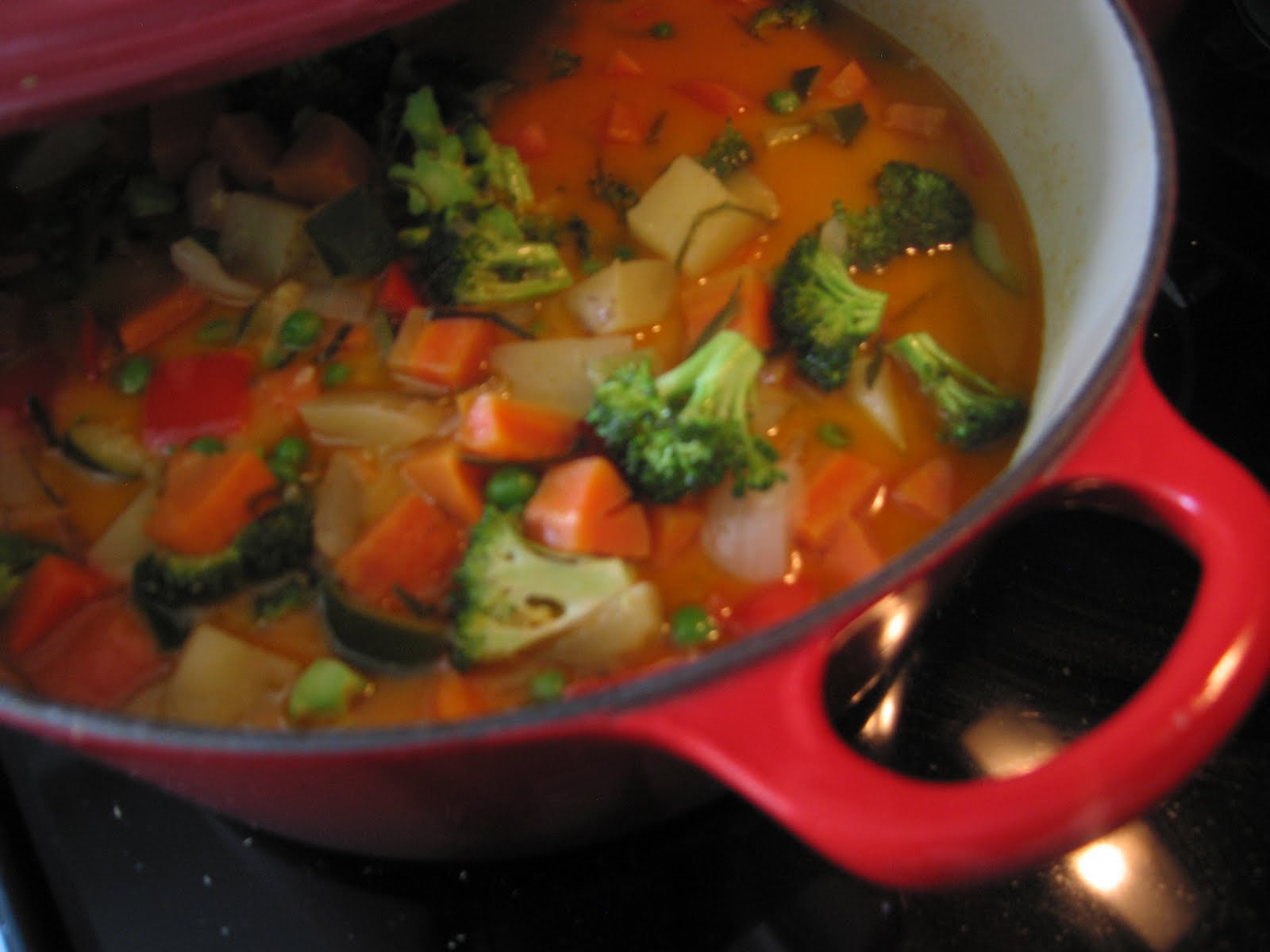 I love curry, love. My husband…not so much (talking about the curry). So sometimes I’ll treat myself to lunch and have curry by myself. Recently I was watching Giada DeLaurentiis on the Food Network and she was making Thai food for her husband and Vegetable Curry was on the menu. I thought awesome, if Giada whom is a Italian girl/chef can make curry for her husband maybe this Italian cosmo hippie chef (me) may have found a curry recipe to make for my husband. So it goes that a couple days ahead of time I’m prepping Billy that I want him to have a open mind, all the other things that I have made him that he thought he wouldn’t like he ended up liking, go figure. So it was the opening day for Farmer’s Market. It was cold and rainy and perfect for something warm like curry. I made the curry and was so excited, and guess what? Billy liked the it, but for me not so much. What happened you ask? I’m not really sure, but if you’ve had curry you know a good curry. This was a great easy recipe and it got my husband to have an open mind to curry. When ever I made something awesome my husband will say “babe this is so good, what did you put in this?” and my reply is always “I put my finger in it!”, so maybe I forgot to stick my finger in it. Next time.Vegetable Curry… and a lesson in cooking