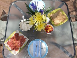 *Banana’s India House- 1 c. organic sour cream, 1/4 c. sucant (sugar, agave) stir to combine, when the sugar dissolves add 1-2 chopped bananas. Fold mixture gently together.