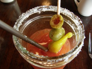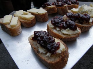 While we waited for the soup to simmer a bit we got started on a simple appetizer. French baguette, local sharp cheddar, local blue cheese and topped with a tart cherry spread. So damn good!