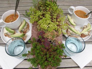 Dinner is served! Quinoa Soup topped w/ fresh basil and Spinach Salad w/ crumbled Vegan Herbed Crackers. (recipe for the crackers is on the blog) Billy said that this is was once of the best meals he’s ever had, it could have been the wine talking. What a great day this has been.