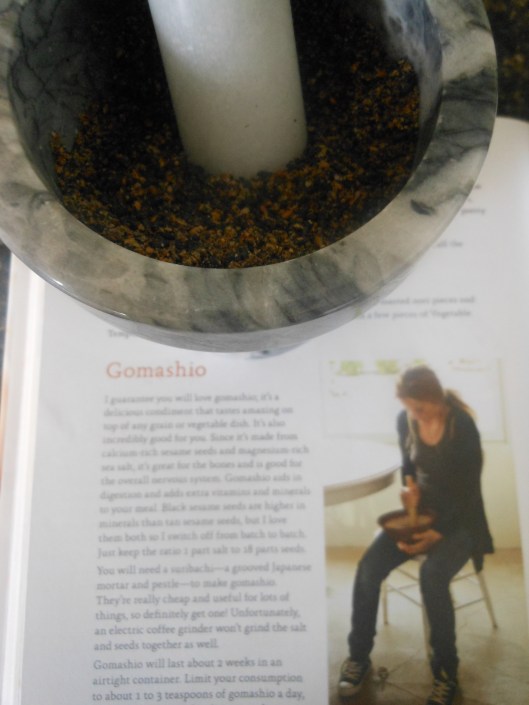 Gomashio: Since gomashio is made from calcium rich sesame seeds and magnesium rich salt, it is great for the bones and is good for the overall nervous system. Gomashio aids in digestion and adds extra vitamins and minerals to whatever you put it on. Black sesame seeds are higher in minerals that the tan ones. Limit your consumption to 1-3 tsp a day to ensure you are not getting too much salt in your diet.