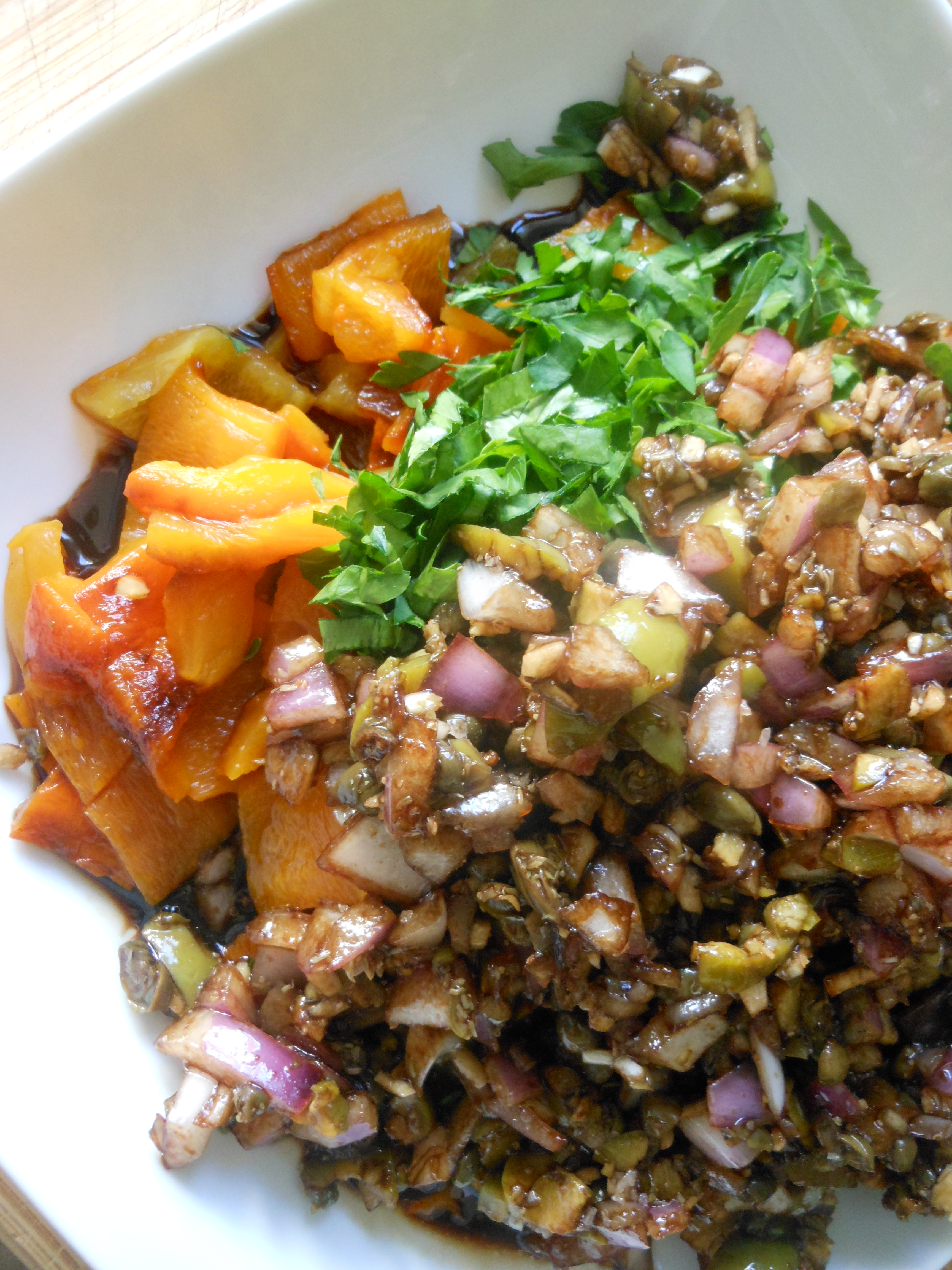 1. All of the ingredients except the olive oil go into the food processor. Pulse until combined, scrape down sides. With the motor running add the olive oil. Store in the refrigerator. Serve over quinoa w/spring veg or anything else you would like.