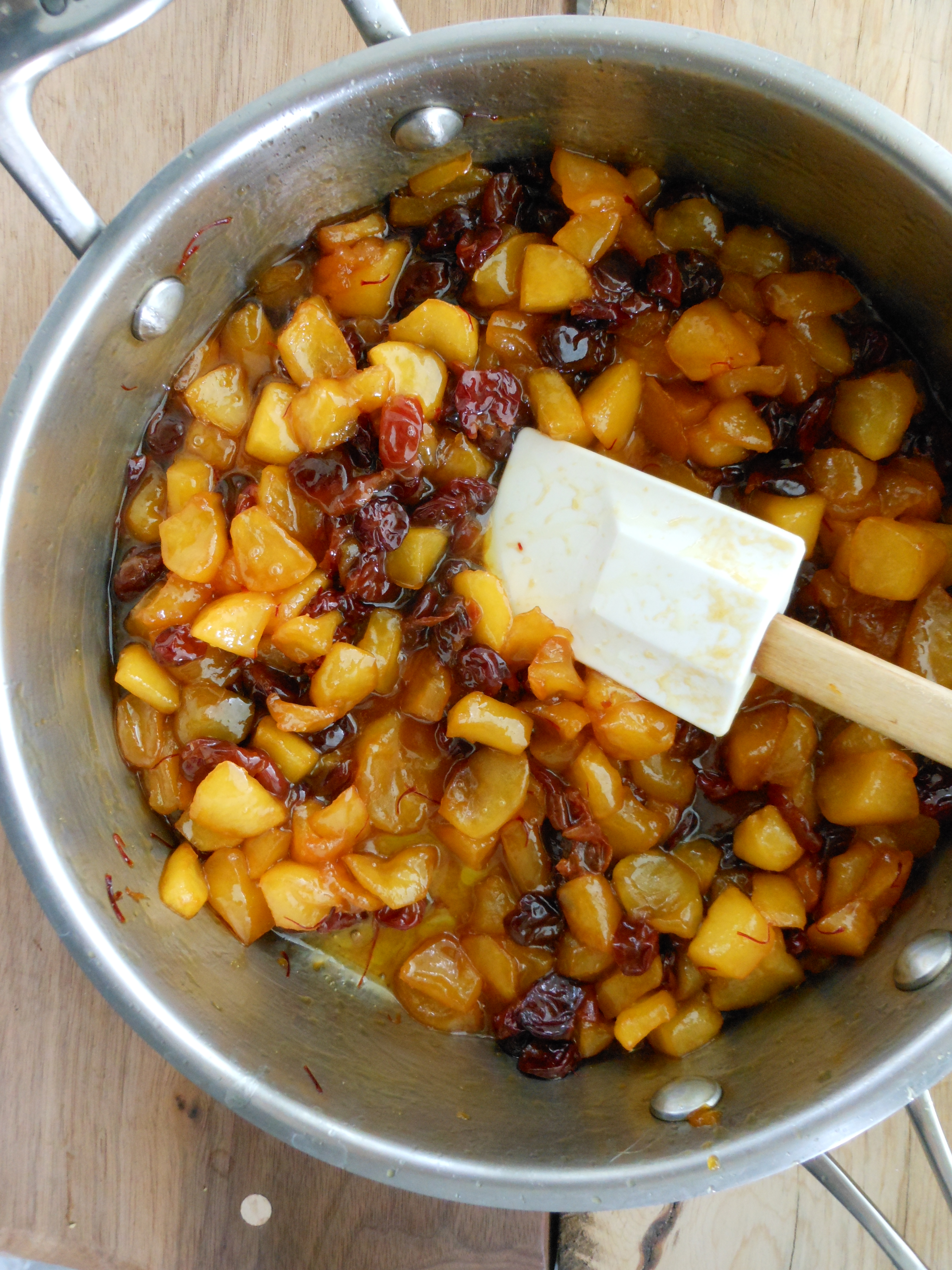 2. Cook the potatoes: Start by placing a saute pan on the stove over slightly hotter than medium heat, melt 1 T. ghee. Add the potatoes and season well with salt and pepper, toss. Take your time with the potatoes, make sure they brown evenly on all sides so toss often. When browned on each side use a lid that is just big enough to cover the potatoes, turn the heat down just a notch below medium and place the lid over the potatoes and let them steam. Take lid off and toss, place lid back on and steam until cooked through. When the potatoes are cool add them to the salad. This may seem a bit involved but the result is perfect potatoes, I cook mine like this all the time.