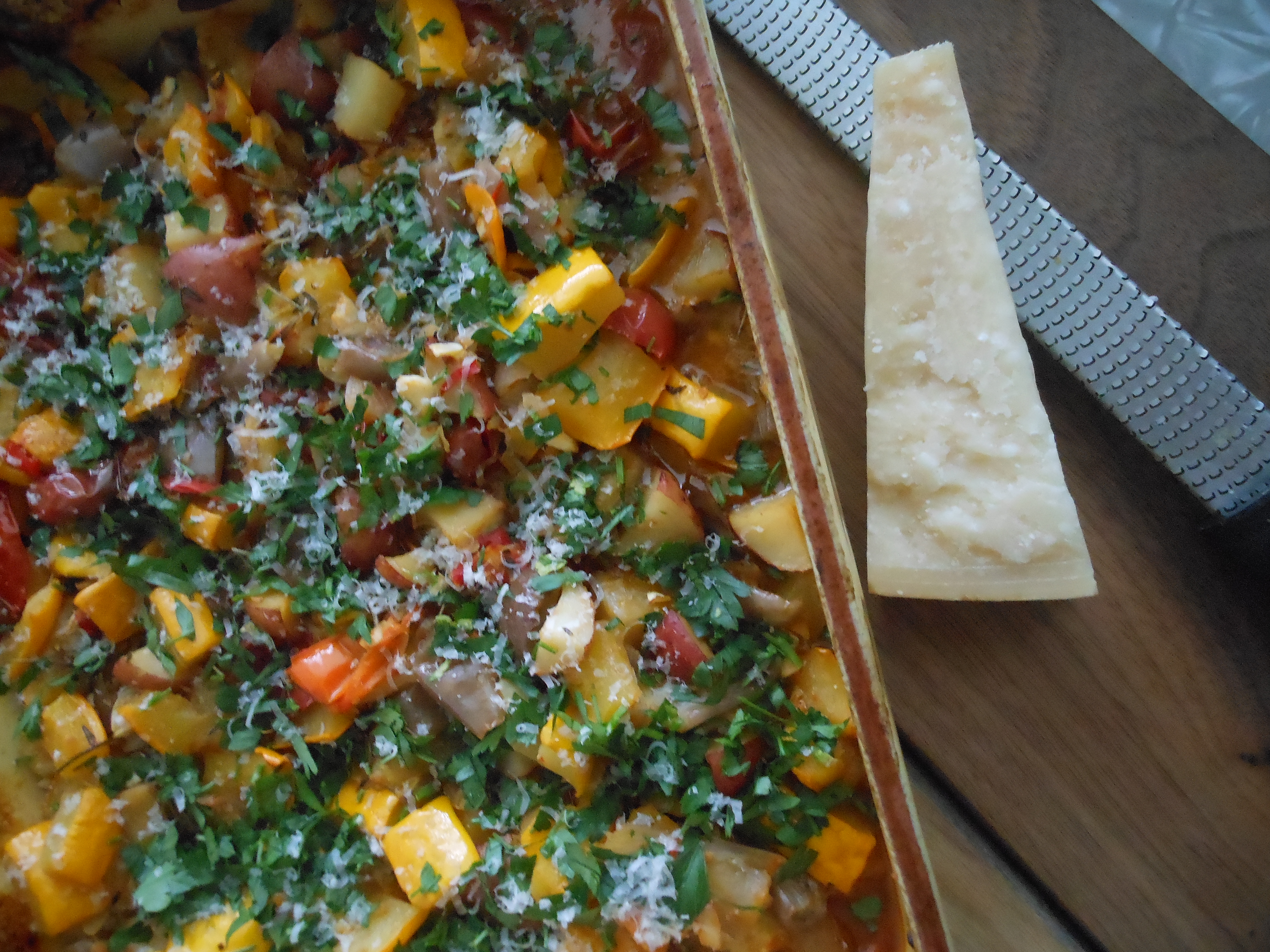 chilies, eggplant, garlic, gluten free, local, onions, parsley, potatoes, seasonal, tomatoes, vegan, vegetables, zucchini