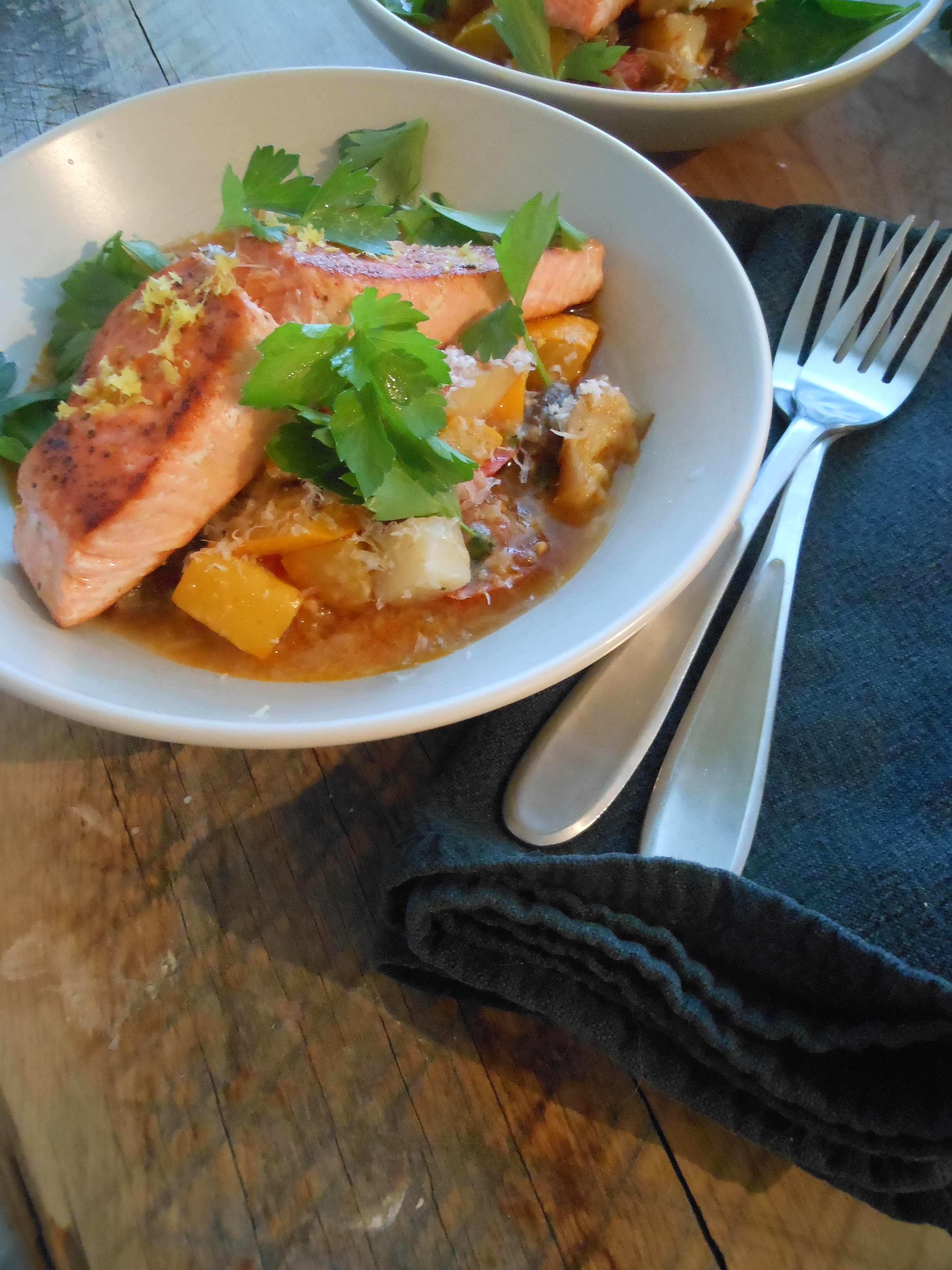 DSCN3187The day I made the Baked Ratatouille we had it for dinner with Wild King Salmon, super delish.