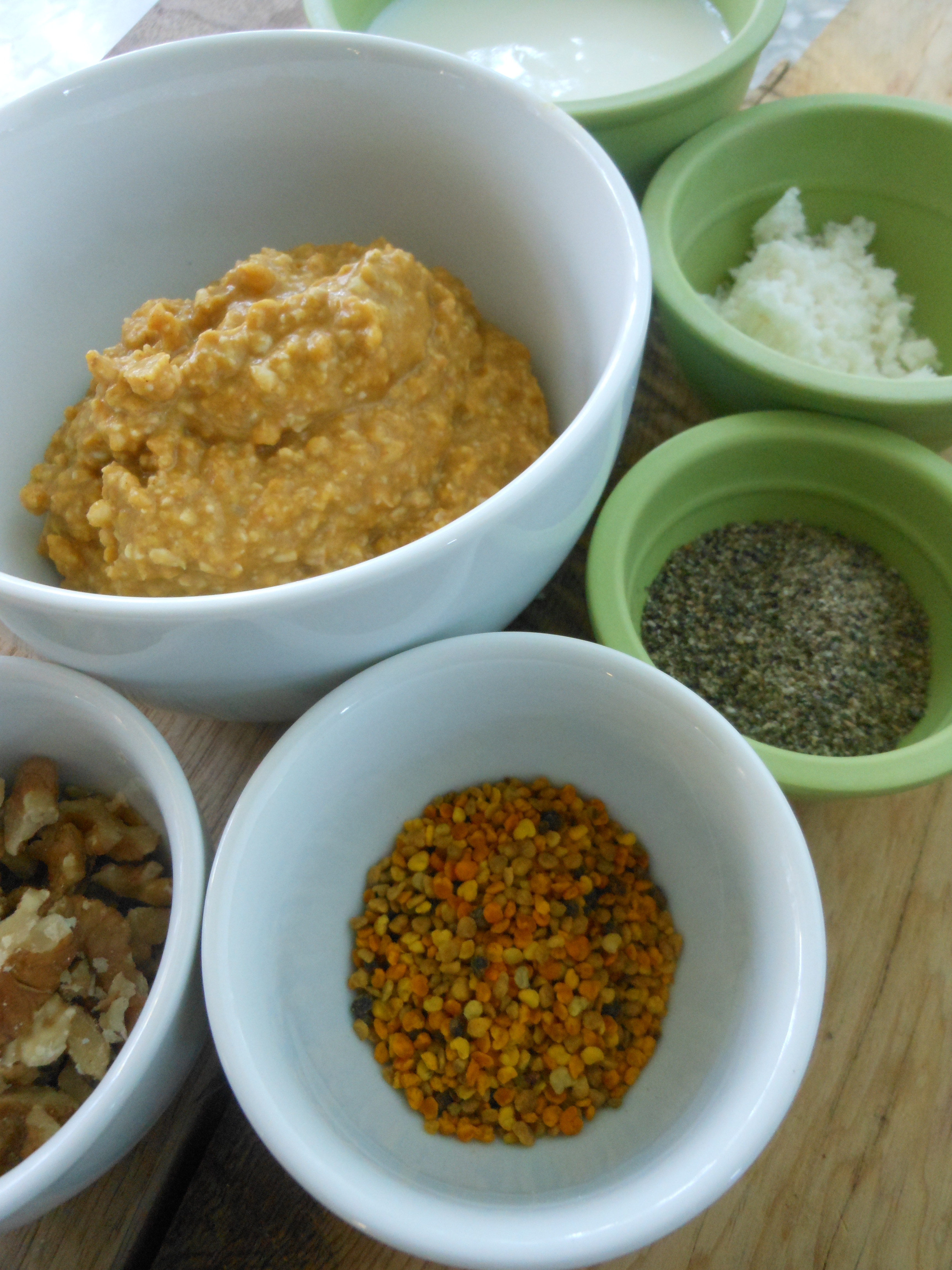 1/2 c. fresh roasted pumpkin puree (here is a old recipe using fresh roasted pumpkin puree)