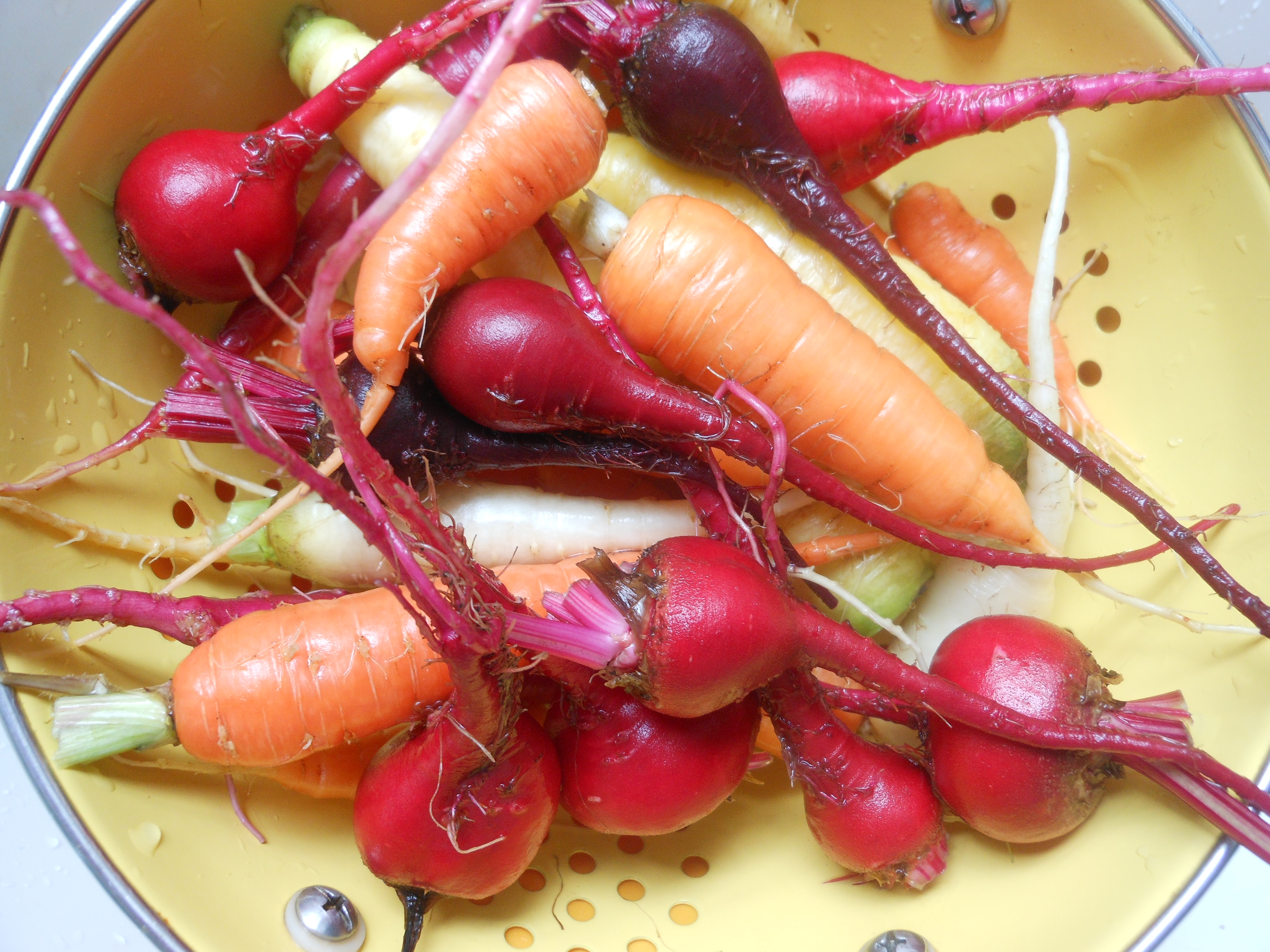 2. Drain the beans, place them in heavy bottom pot and cover with enough water to cover about two inches above the beans. Throw in a finger long piece of kombu (kombu is a sea vegetable that helps tenderize the beans and adds minerals. You can find kombu at most health food stores or asian markets). Bring beans to a boil and let boil for 5 minutes, skim any foam that forms on the top. Then turn down heat to medium low, place lid on the pot and simmer for 1 hour to 1 1/2 hours depending on the beans. You’ll need to check them, you do this by taking one out and lightly smashing it with your finger, if it does this effortlessly they are done.